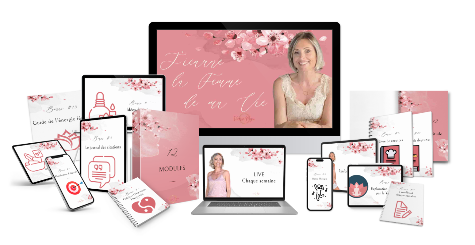 J'incarne la femme de ma vie est un programme de transformation qui vous accompagne pas à pas pendant 12 semaines dans votre transformation. Chaque semaine un nouveau module avec de nombreux supports vidéos, audios, cahiers d'exercices et un coaching de groupe chaque semaine !